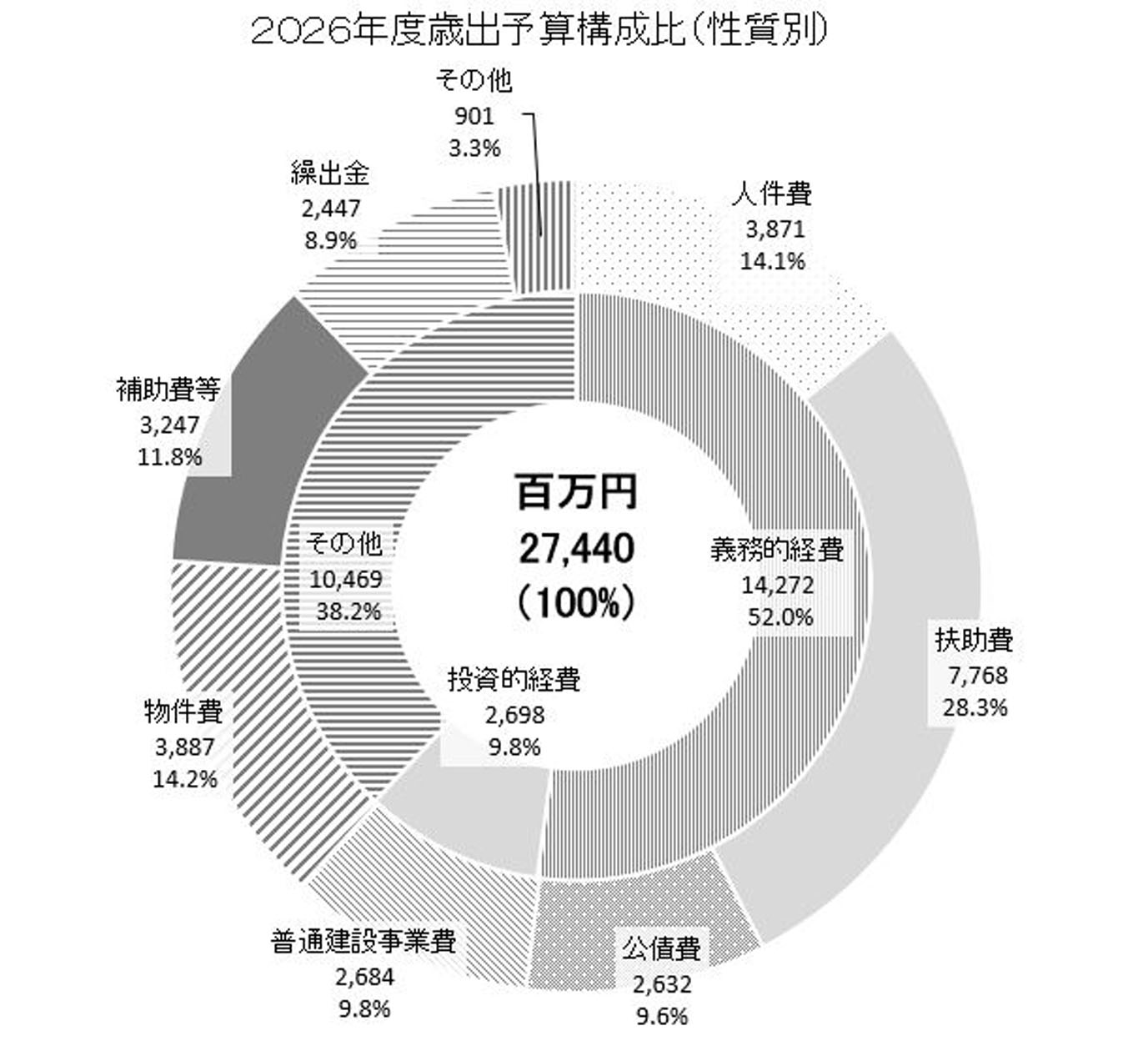 【予算】投資的経費は前年度当初比56・5%減の約94億、西唐...