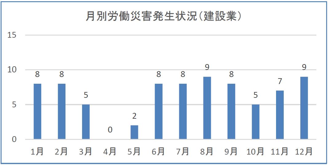 『第13次防』4年目の本年を見ると、5月末現在で長崎署管内における建設業の死亡災害が残念なことに1件発生している。初歩的な安全管理ができていれば、多くの災害は防ぐことができる。このため、基本的な事項の徹底と労働者への安全教育の徹底などに努めてほしい。