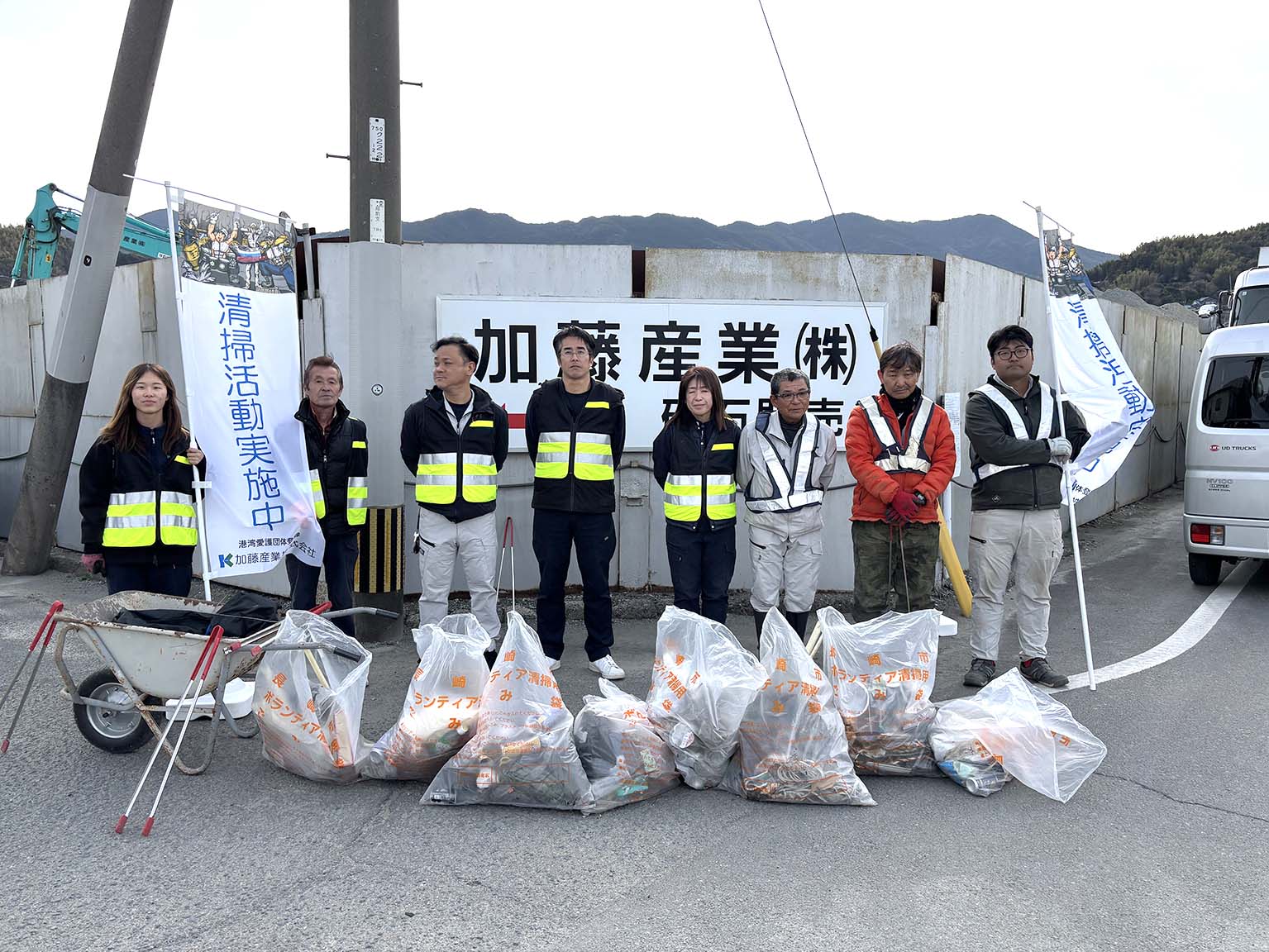 今回の活動は天気に恵まれ、延べ11名で弊社小ケ倉営業所がある長崎市小ケ倉町の柳ふ頭を清掃しました。今後も清掃活動を継続し、地域へ貢献して参ります。