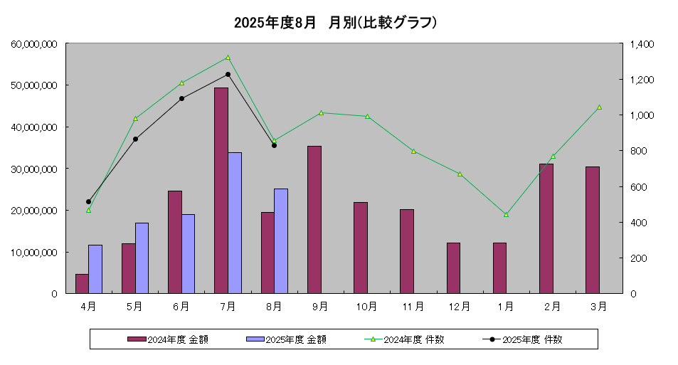 月別入札情報(25年8月) /全体発注額は前年同月比21.8%増/国・県・市・町・その他全てで落札金額が増