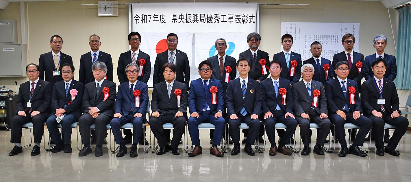 県央振興局(大塚英樹局長)は19日、同局研修棟で、2025年度優秀工事と下請表彰、それに優秀若手技...