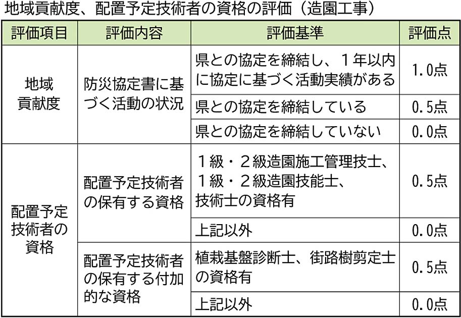 佐賀県は、建設工事の総合評価落札方式に関する事務処理の手引きを改定する。造園工事の総合評価について...
