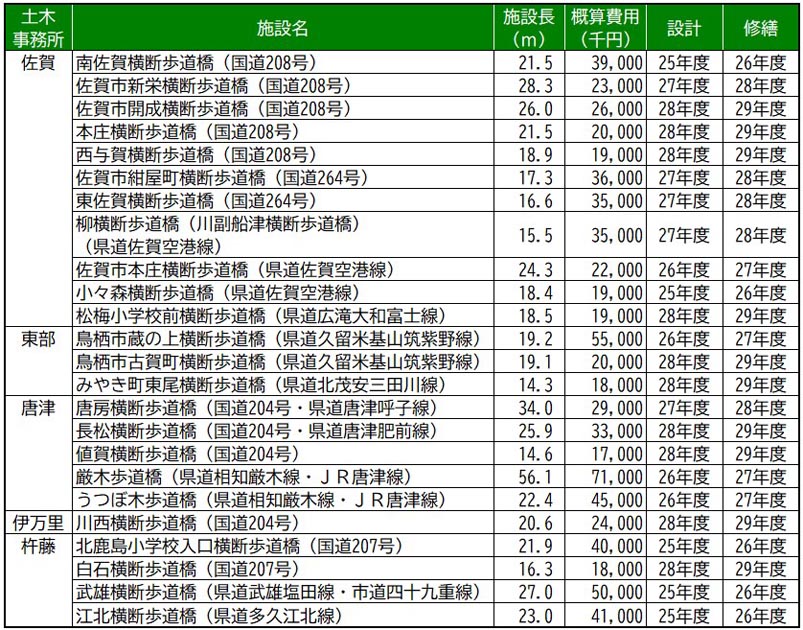 道路付属物長寿命化修繕計画、10年間で9.7億円投資/佐賀県