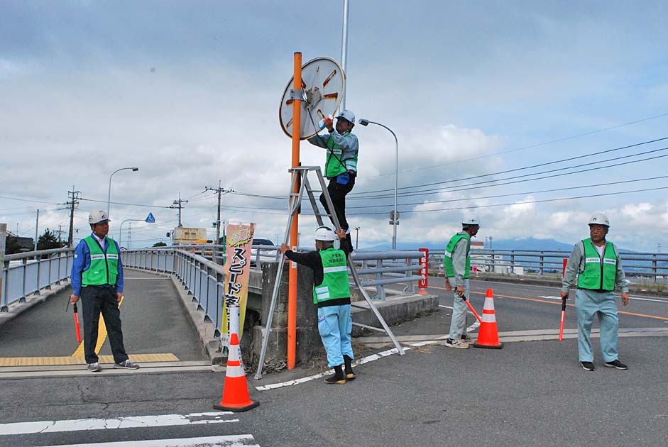 カーブミラー磨きの様子