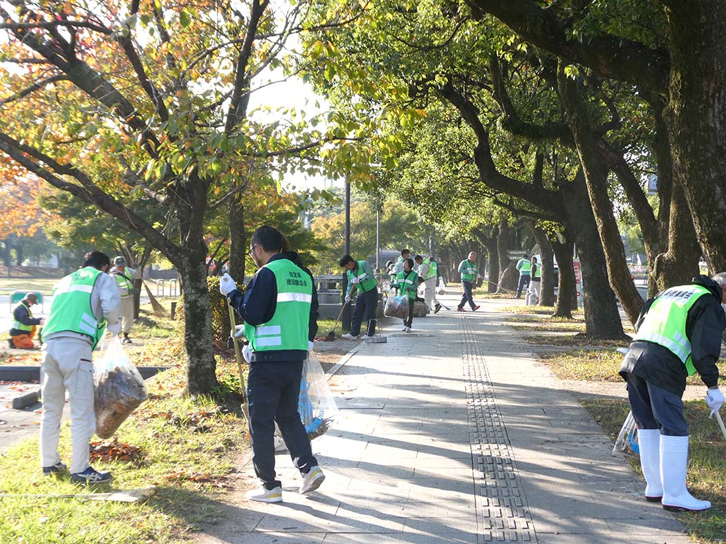 同協会の地域貢献事業の一環として「県庁前清掃ボランティア活動」を佐賀バルーンフェスタの前後に実施している。参加者が松葉ほうきなどを使って、歩道に落ちている落葉をきれいに片付けた。