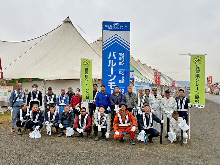 協会として初めて佐賀インターナショナルバルーンフェスタの会場において環境ボランティア活動を行いました。広い会場を巡回しながら清掃に取り組む中で、イベントの力強い賑わいを実感し、本県の活力を改めて認識する機会となりました。日頃より多くの現場に携わる立場として、このような形で微力ながら社会に貢献できたことを喜ばしく感じております。