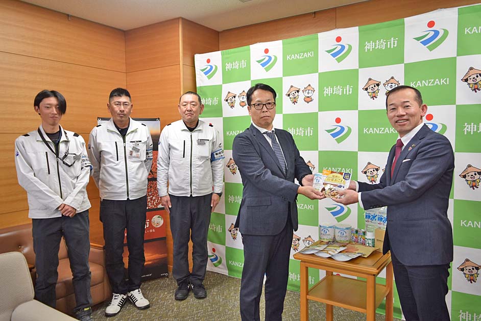 實松市長は工事への尽力に謝意を示し、「神埼市でも毎年のように豪雨災害が発生しており、災害対策を重視している。いただいた物資は大切に活用したい」と述べた。